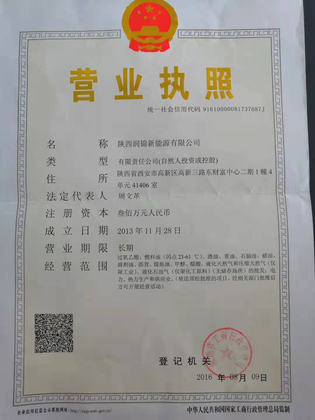 | 经营范围 | 过氧乙酸、燃料油、渣油、重油、石脑油、蜡油、溶剂油、沥油、煤焦油、甲醇、醋酸、液化天然气和压缩天然气(仅限工业)、液化石油气的批发;电力、热力生产和供应业。 | ||||