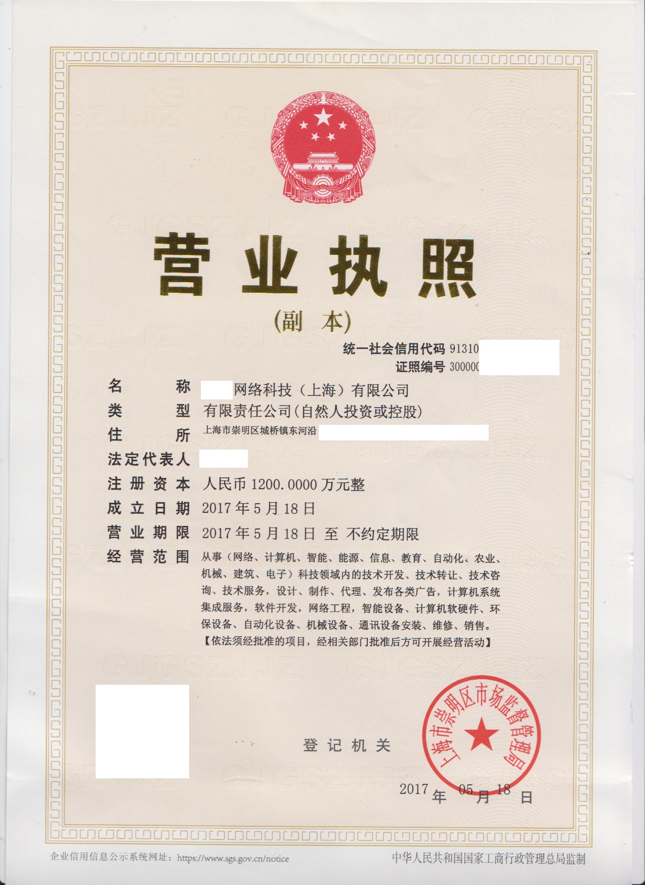 | 企业名称 | XX游网络科技(上海)有限公司 | 成立时间 | 2017-05-18 | 行业分类 | 科技类 |